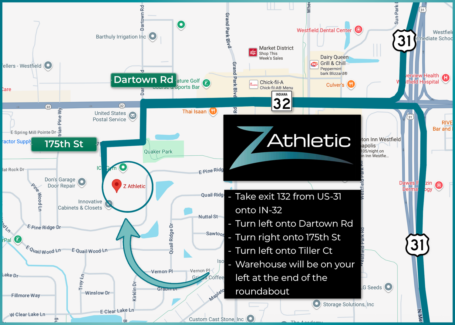 Proceed to the back of the building and park in the far lot. Look for the large banner over the pickup dock.
